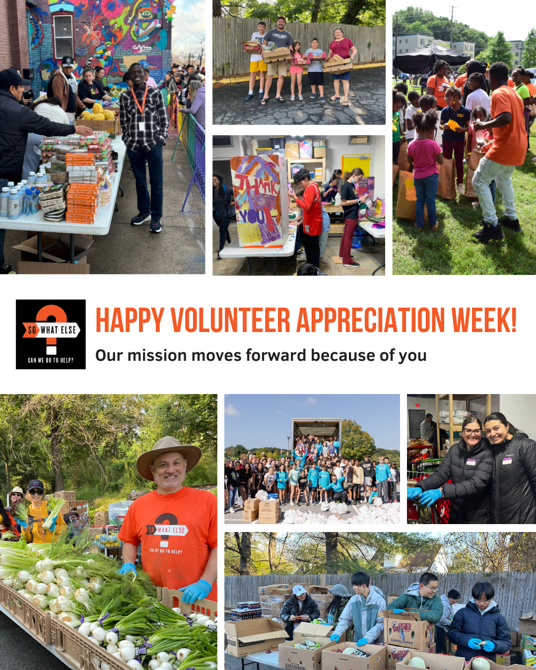 This Volunteer Appreciation Week, we want to thank every person who has given their time and energy to So What Else. Thank you for showing up early, lifting, sorting, packing, driving, organizing, and serving. Thank you for treating every family with care and support. Thank you for helping us turn surplus food into nourishment.