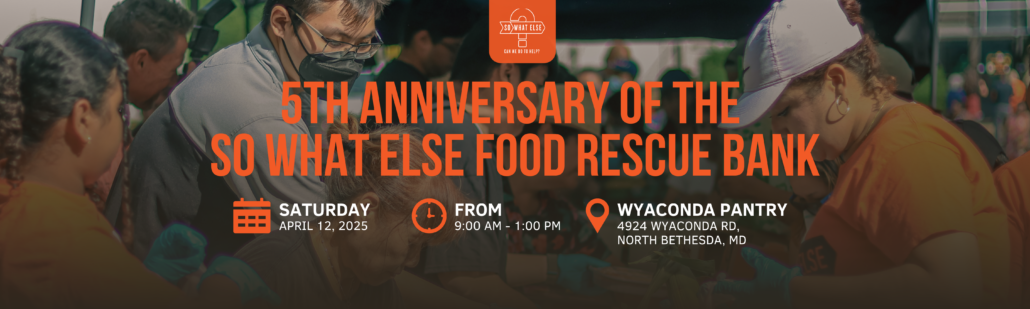 Join us during Food Waste Prevention Week in the DMV as we celebrate five years of impact at the So What Else Food Rescue Bank! This special Open House is a day of volunteering, connection, and celebration in honor of the incredible community that makes our work possible.
