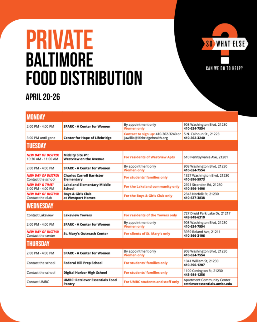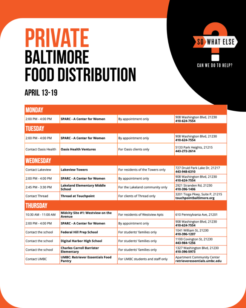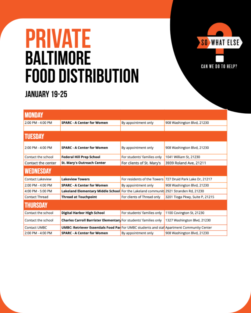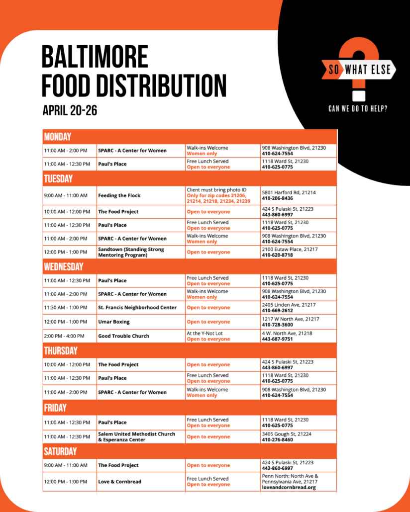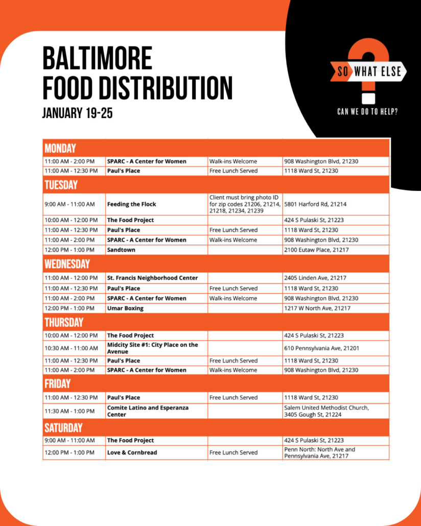 Is your organization interested in partnering with So What Else Baltimore? Although our schedule is very full, we would love to hear from you! Please fill out our Baltimore Partnership Application so we can learn more about your organization and how we might be able to form a mutually beneficial partnership serving the residents of Baltimore City.