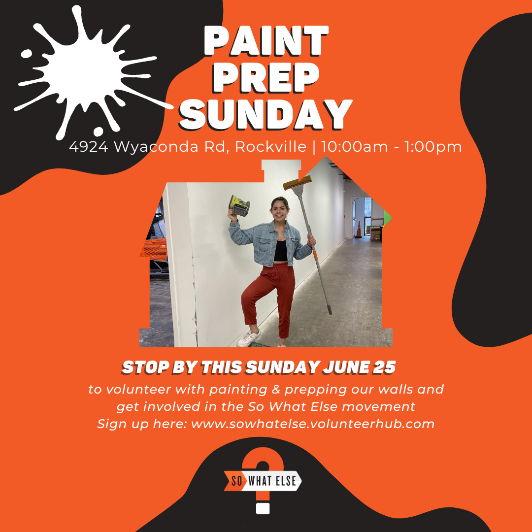 Interested in volunteering with us? Like to paint? Stop by our pantry this Sunday for a “Paint, Prep Sunday” Session with artist Laura Leigh. We will be prepping our walls for a beautiful large mural inspired by our “10 Pillars of So What Else”. Sign up here:Â https://sowhatelse.